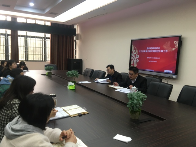 本站讯(国际合作与交流处 供稿)4月18日,国际合作与交流处在会议室召开党支部大会。会上,副处长赵阳做了题为“旗帜鲜明讲政治,守正创新做好新时期高校外事工作”的理论学习分享。分享会由处长吴永顺主持。