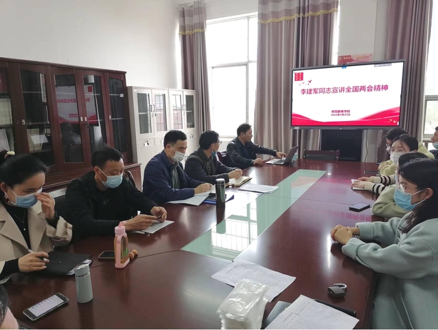 本站讯(师范教育学院供稿)4月20日下午,校党委委员、副校长李建军到所在的师范教育学院党支部上党课,以《学习2022年全国两会精神,迎接党的二十大胜利召开》为题,宣讲全国两会精神。师范教育学院全体教师参加了党课学习。