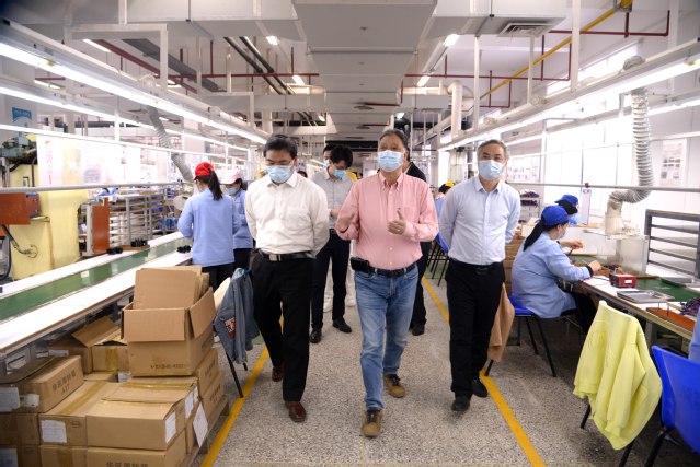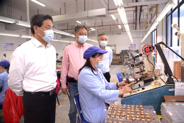校领导一行在宜春市华讯电子制品有限公司总经理杨学良等人的陪同下参观了企业生产车间,详细了解该企业的生产、经营、产品研发、人才需求等方面的情况。