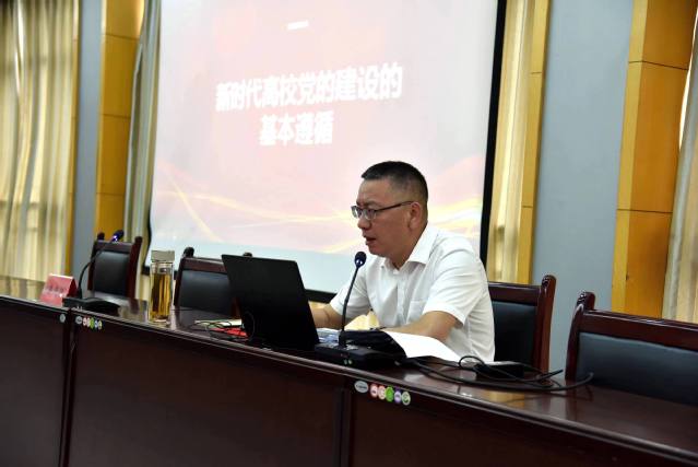 本次培训班紧密结合需要,精心设置课程。培训班上,宜春市直属机关工委书记蔡秋林作了学习贯彻《中国共产党普通高校基层组织工作条例》精神专题辅导。他从新时代高校党的建设的基本遵循、高校领导体制和组织体系、贯彻落实《条例》的几点思考,做了一场精彩的辅导报告。