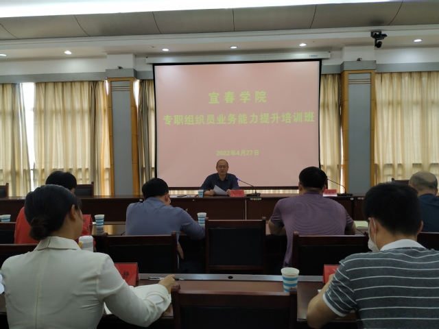 本站讯(组织部 供稿)4月26日至27日,学校在校党委党校举办专职组织员培训班。校党委副书记胡国瑞出席培训班并讲话,宜春市直属机关工委书记蔡秋林,外国语学院党委书记伍忠分别作辅导报告。校党委委员、组织部部长高茂兴主持开班仪式。各基层党委副书记、全体组织员,组织部全体同志参加此次培训。