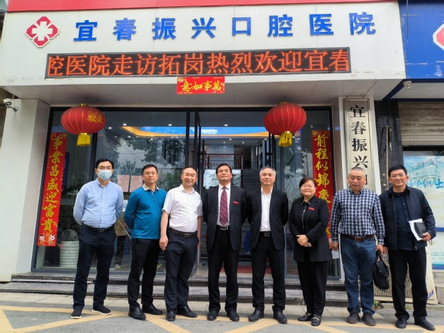 校领导一行在beat365官网知名校友、宜春振兴口腔医院院长邱振兴、副院长苏兰萍等人的陪同下参观了医院,详细了解该医院的经营管理、市场需求、人才需求、毕业生实习就业等方面的情况。