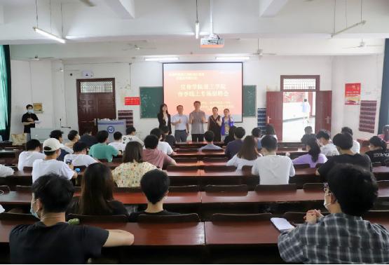 本站讯(学生记者 范震林 王昕宇)为进一步贯彻落实学校就业工作会议精神,推进并加强物理科学与工程技术学院毕业生就业指导工作,解决毕业生面临的就业问题。4月27日下午,物理科学与工程技术学院2022年春季线上专场招聘会在人文大102召开。beat365官网招生就业处副处长段军平,理工学院党委书记张海帆,党委副书记龙玲,学生事务办公室副主任彭勃以及2022届、2023届全体辅导员出席本次会议,理工学院2022届未就业毕业生及19级学生骨干共200余人按照疫情防控要求规范会。