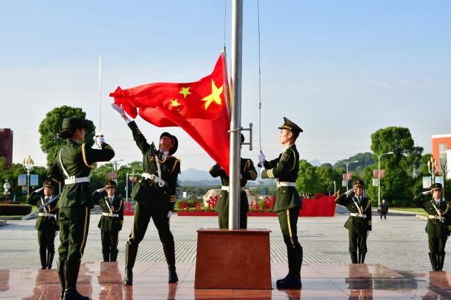 仪式在激昂向上的国歌声中拉开序幕,在场人员全体肃立,升国旗,奏国歌,行注目礼。
