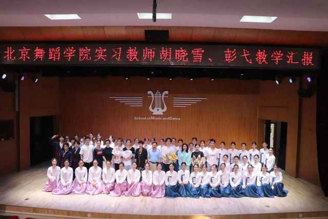 本站迅(学生记者 韦海艳)5月3日、5日下午,北京舞蹈学院舞蹈专业实习教师于艺术楼音乐厅进行教学成果汇报,音乐舞蹈学院院长刘培发、副院长丁庆以及舞蹈教研室全体老师观看了汇报。