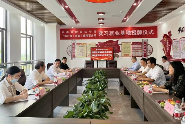 本站讯(学生通讯员 缪林志)为贯彻落实国家“稳就业”“保就业”决策部署,进一步推进就业工作,助力政法学院高质量、更充分就业,5月6日下午,校党委委员、副校长罗政,政法学院党委书记聂火云、副院长邓晔、教务科科长周红一行赴上海沪师(宜春)律师事务所开展访企拓岗活动,并举行实习就业基地签约挂牌仪式,沪师(宜春)律师事务所主任邹维、执行主任余明等出席签约挂牌仪式。