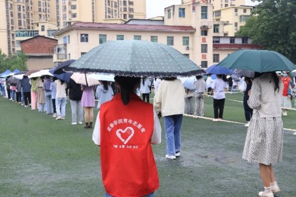 在核酸检测过程中,无论天晴或下雨,志愿者们始终坚守在岗位上,他们引导同学们有序排队、提前出示二维码,提醒同学们核验完成后尽快离开现场等,在核酸检测现场构筑起一道亮丽的“青春防线”,用实际行动助力学校安全顺利地完成近期三轮核酸检测工作。