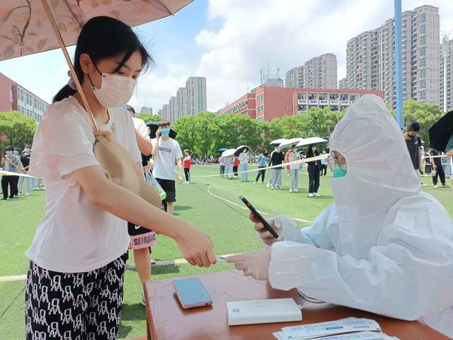 “自己做了‘大白’就知道医护人员有多不容易。我们早上7点不到集合,身着白色的防护服,比较闷热,气温高的时候一个小时身上就湿透了,工作、行动不太便捷”核酸检测工作量比较大,一个检测点3个小时要完成800人左右的核酸检测,因为身着防护服,“大白”们为了节约资源和压紧时间,避免上厕所,早餐少量饮水,中途尽量不喝水。“但内心又觉得能在这个时刻发光发热,感觉还是很有意义的”。
