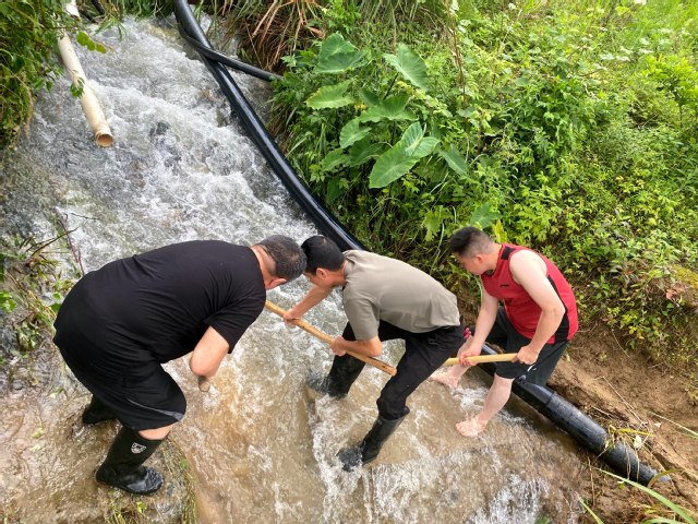 “走,带上工具,我们去疏通管道,坚决不能让老百姓用不上水!”5月30日一大早,夏荣光一声令下,除了留在村里值班的女干部,其他所有人分成了几个团队,奔赴几处水源地,开始疏通被泥沙掩盖的水源地,清理已经流入大量泥沙的净化池。
