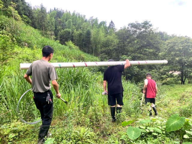 此时,因暴雨而形成的水流还十分湍急、混浊。为了尽快恢复用水,有的村干部们脱去了外套,光着上身跳入冰凉彻骨的山水中,甩起膀子就干起来;有的村干部不顾净化池内部的不安全因素,毫不犹豫地下到池中,一锹一锹不停地往外铲着泥浆;有的村干部往返于杂草丛中,被虫蚁叮咬也浑然不觉,以至于后来小腿至脚踝处全是肿胀痛痒。大家连续作战,截止当天下午4时,所有的水源地管道全部被疏通,净化池得到了有效清理,到晚上全村逐渐恢复供水,第二天全村都能够正常用水。