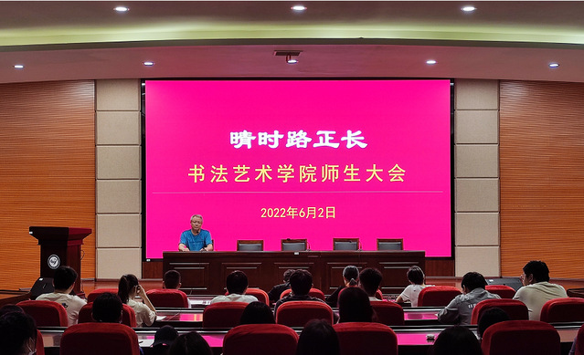 本站讯(书法艺术学院 供稿)为进一步加强疫情的防控管理,做好学期结束和毕业生相关工作,6月2日下午,书法艺术学院在科技楼报告厅召开了全体师生大会。会议由院长梁敏主持。