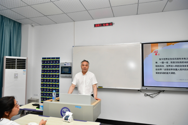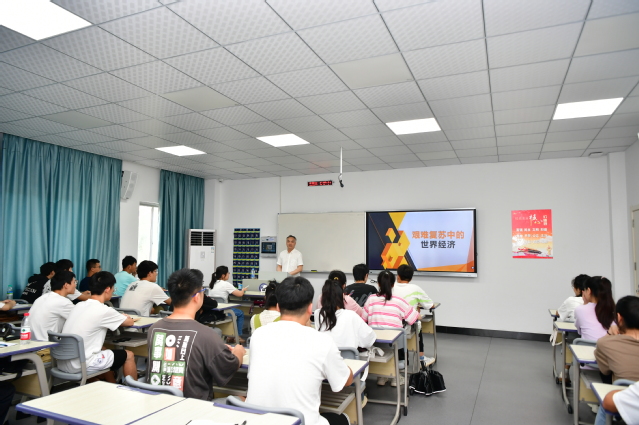 本站讯(生科学院 供稿)6月8日下午,校党委书记曾晓春作为第二班主任在二教楼东一307为生命科学与资源环境学院20级农学班学生讲授“艰难复苏中的世界经济”为主题的形势与政策课,农学系系主任陈云风、20级农学一班班主任支添添及20级农学班全体学生参加。