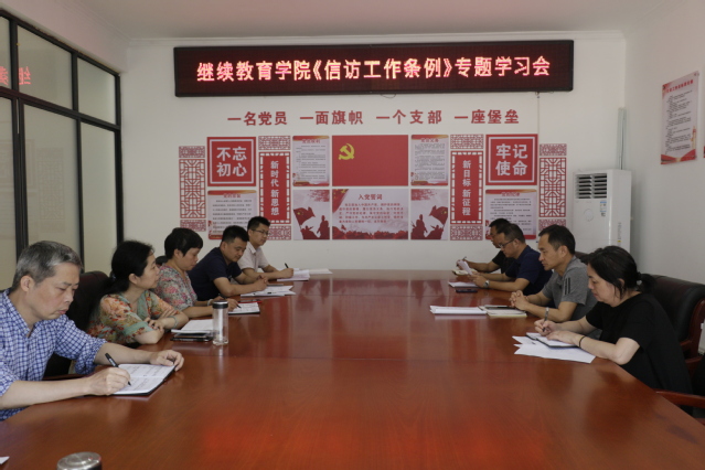 会上,张朝辉首先解读了继续教育学院开展《信访工作条例》宣传月活动方案,就宣传月活动进行了专项安排。然后,组织全院教职工认真学习了《信访工作条例》,深入学习了《信访工作条例》出台的重要意义和新时代信访工作的重要性。