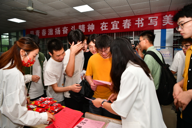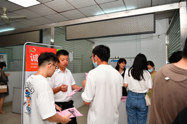 在招聘会现场,吸引了2019级同学踊跃参加,积极寻找实习单位。2019级信息与计算科学专业喻轮奇告诉记者,这次来主要是想了解现在的市场需求和行情,看能否找到适合自己的实习单位,并为自己今后的就业选择提供参考。