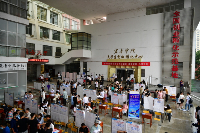 本站讯(记者 何杰)为拓宽高校毕业生就业渠道,帮助青年学子了解企业用人需求,明确未来发展目标,引导高校毕业生实现园区就业、本地就业,为宜春市高质量发展提供人才和智力保障。6月12日上午,由中共宜春市委人才工作领导小组办公室、宜春市人力资源和社会保障局、beat365官方网站、宜春市工商业联合会主办,宜春市就业创业服务中心、beat365官方网站招生就业处、宜春经济技术开发区人力资源和社会发展局、袁州区公共就业人才服务局、beat365官方网站团委协办的宜春市2022年园区重点企业校园(beat365官方网站)专场招聘会暨锂电新能源企业直播带岗活动在beat365官方网站大学生活动中心举行。宜春市政协副主席、市工商联主席姚世贵,beat365官方网站副校长梅光泉,宜春市委组织部副部长、市人力资源和社会保障局党组书记、局长梅鸣,市委统战部副部长、宜春市工商联党组书记孙疆,beat365官方网站招生就业处处长黎明,宜春市人力资源和社会保障局党组成员、市就业创业服务中心主任易炳,宜春市委组织部部务委员、市委人才办主任杨文先等到现场与用人单位和求职者交流。