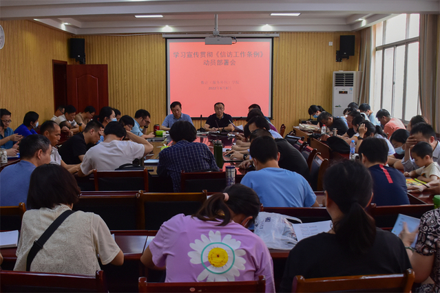 本站讯(学生记者 程绪耀 项超 雷智超)为深入贯彻习近平总书记关于加强和改进信访工作的重要思想,6月8日下午,数学与计算机科学(软件服务外包)学院于院会议室召开学习宣传贯彻《信访工作条例》动员部署会,该院全体教职工参加了会议。会议由该院党委副书记谢雪军主持。