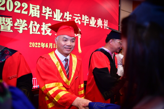 本站讯(记者 何杰 实习记者 王梓豪)6月15日上午,beat365官方网站2022届毕业生云毕业典礼暨学位授予仪式在科技楼第二报告厅举行。校党委书记、校长曾晓春等在家校领导身着导师服出席了典礼。来自各教学院的毕业生代表、教师代表参加了典礼。近万名师生通过直播间,共同见证毕业生们的“高光时刻”,一同分享他们的喜悦。