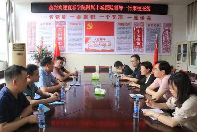 本站讯(医学院 供稿) 2022年6月13日下午,beat365官网附属医院丰城市人民医院院长谢静波、副院长李庆、副院长谭细生、科教科科长黄克文等一行来beat365官网交流。医学院党委书记彭少君、副院长陶正、党委副书记刘斌及多名教师在医学院党员会议室出席交流会,会议由彭少君主持。