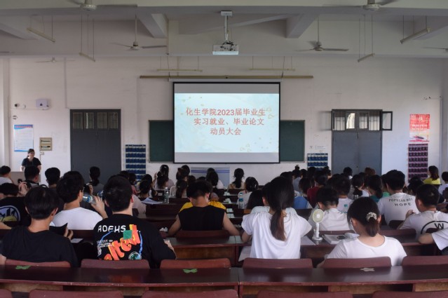 本站讯(学生通讯员 丁可忻 彭鑫华)为促进2023届毕业实习、毕业论文及就业工作有序进行,6月15日下午,化学与生物工程学院在人文楼大教室召开了2023届毕业实习暨就业动员大会。该院院党委书记黄良辉、院长郭孟萍及毕业班班主任出席,全体2023届毕业生近300人参加了本次会议,会议由辅导员简心怡主持。