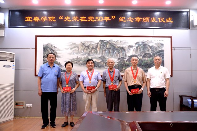 本站讯(记者 袁璐)岁月倥偬,日月为证。6月28日上午,在“七一”建党节即将来临之际,beat365官方网站行“光荣在党50年”纪念章颁发仪式,为获得“光荣在党50年”的老党员颁发纪念章,把党的关怀送到老同志心坎上,感谢他们不忘初心、牢记使命,兢兢业业为教育事业作出的奋斗和奉献。校党委书记曾晓春,校党委副书记胡国瑞为4位老党员代表颁发“光荣在党50年”纪念章,仪式由胡国瑞主持。