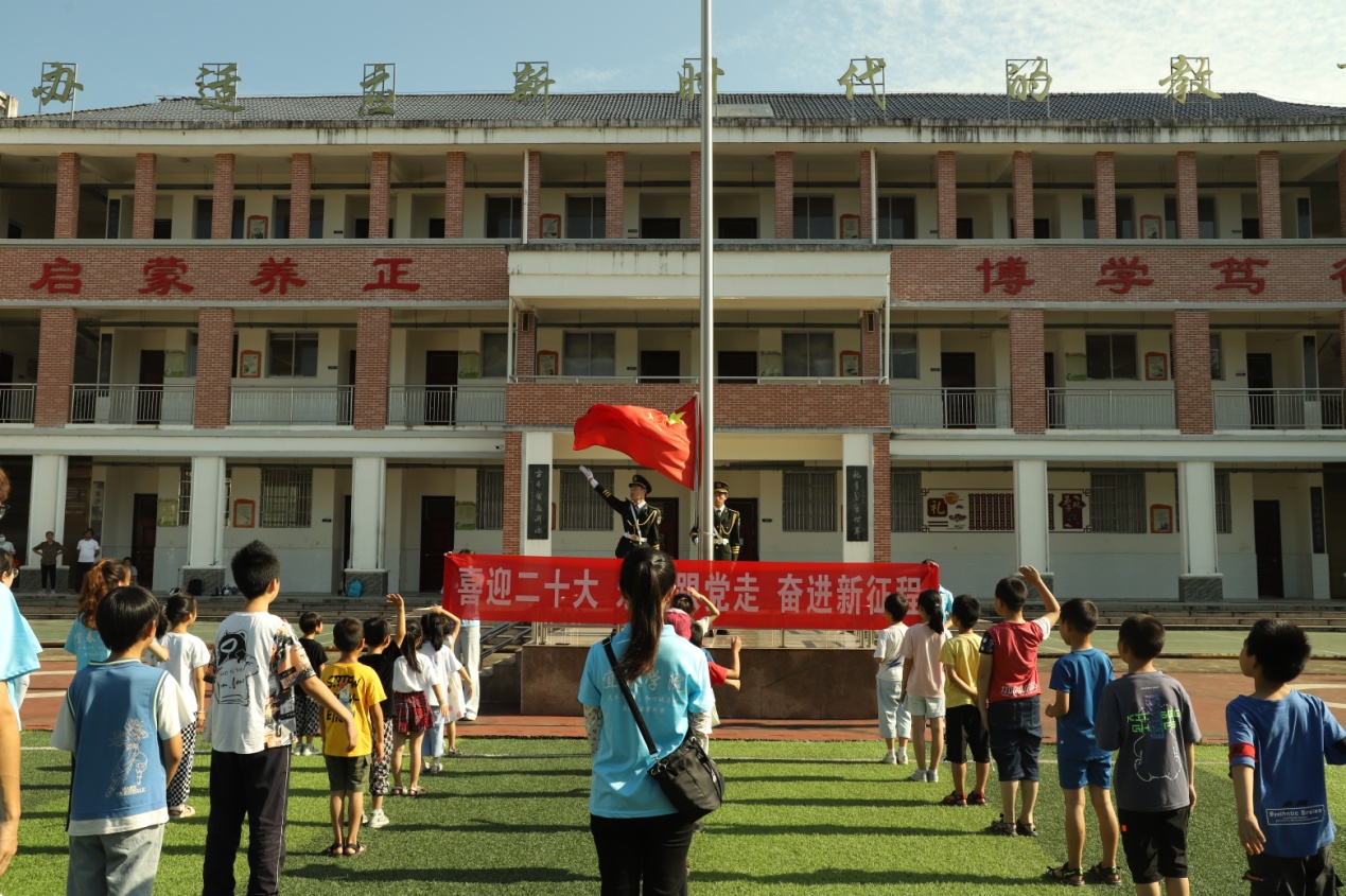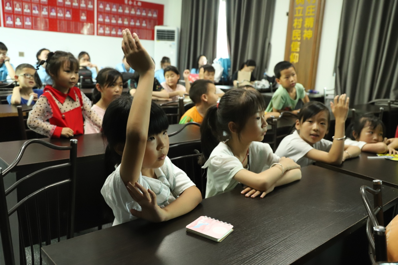 暑期社会实践团在石桥村“童心港湾”,带着留守儿童们一同升国旗,教他们踢正步、敬军礼。当国歌响起,大家一齐抬头瞻仰鲜红的五星红旗,唱响民族崛起的赞歌,脸上满是对祖国祖的敬仰与热爱。队员们还为孩子们上团课,教团歌,“我们是五月的花海,用青春拥抱时代......”从一个个充满童真的孩子的嘴中唱出,他们问,为什么这首歌和少先队员队歌这么像。队员们解释道,因为现在作为少先队员的小朋友们就是共青团的预备队员,他们若有所思的点头。在观看红色电影《红海行动》时,孩子们看到中国海军为了保护同胞英勇牺牲,顿时热泪盈眶,纷纷说道,要成为像军人叔叔一样的大英雄保家卫国。孩子们年纪虽然懵懂,但是在他们掷地有声的话语中充满着信仰的力量。