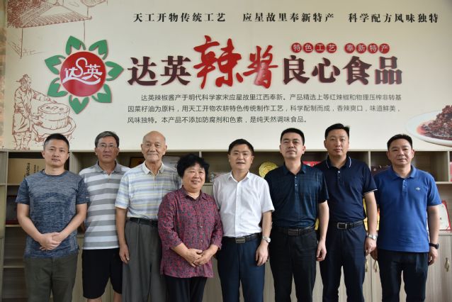 江西达英食品有限公司主要从事辣椒酱等调味品生产及销售。2013年,在陈武教授团队的指引帮助下,60岁的山乡大妈邹达英创办了该公司。经过10年的长足发展,现已成为全省知名的调味品生产企业,产品获“国家合格评定质量信得过产品”并畅销全国各地,2021年销售收入3128万元,利税326万元。公司被评为宜春市“优秀农业产业化龙头企业”;“达英”被认定为“江西省著名商标”、“江西老字号”;2019年邹达英团队更是被全国妇联评为“巾帼文明岗”。调研组一行参观了厂房、生产线、物流仓储区等区域,建议该企业进一步研发新品,加快拓展市场,提高企业竞争力。
