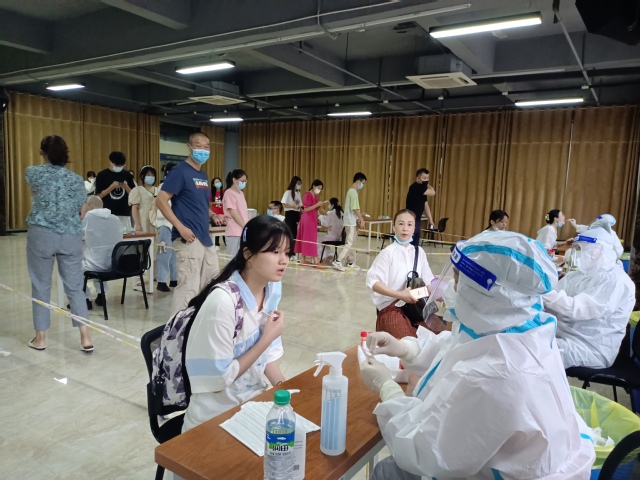 在学校各大门,党员先锋队的志愿者正组织学生有序扫码,落实核酸检测结果后,进入校园;在大学生活动中心核酸采样点,大家有序排队,按照“三天两检”要求,做好核酸采样工作;在学校食堂,洁净如新的餐具、可口美味的餐品正欢迎着同学们的到来。学校从各个方面为同学们的学习生活保驾护航。