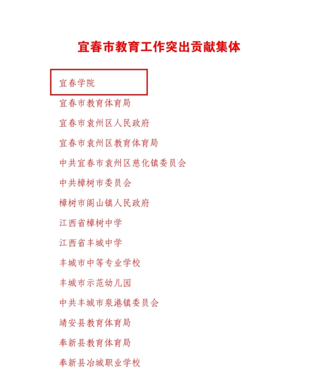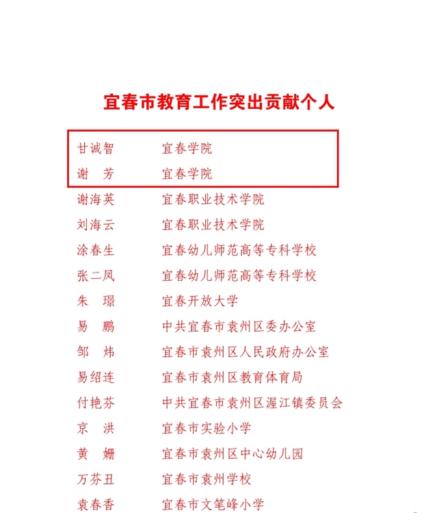 beat365官网荣获宜春市教育工作突出贡献集体,beat365官网数学与计算机科学学院党委书记甘诚智、物理科学与工程技术学院院长谢芳荣获宜春市教育工作突出贡献个人。