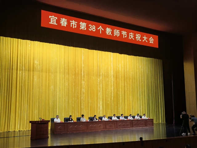 本站讯(记者 何杰)9月7日,宜春市第38个教师节庆祝大会召开。市委书记于秀明出席会议并讲话,校党委书记曾晓春出席会议并在主席台就座。大会通报表扬了一批对全市教育工作作出突出贡献以及尊师重教表现优秀的先进集体和个人。