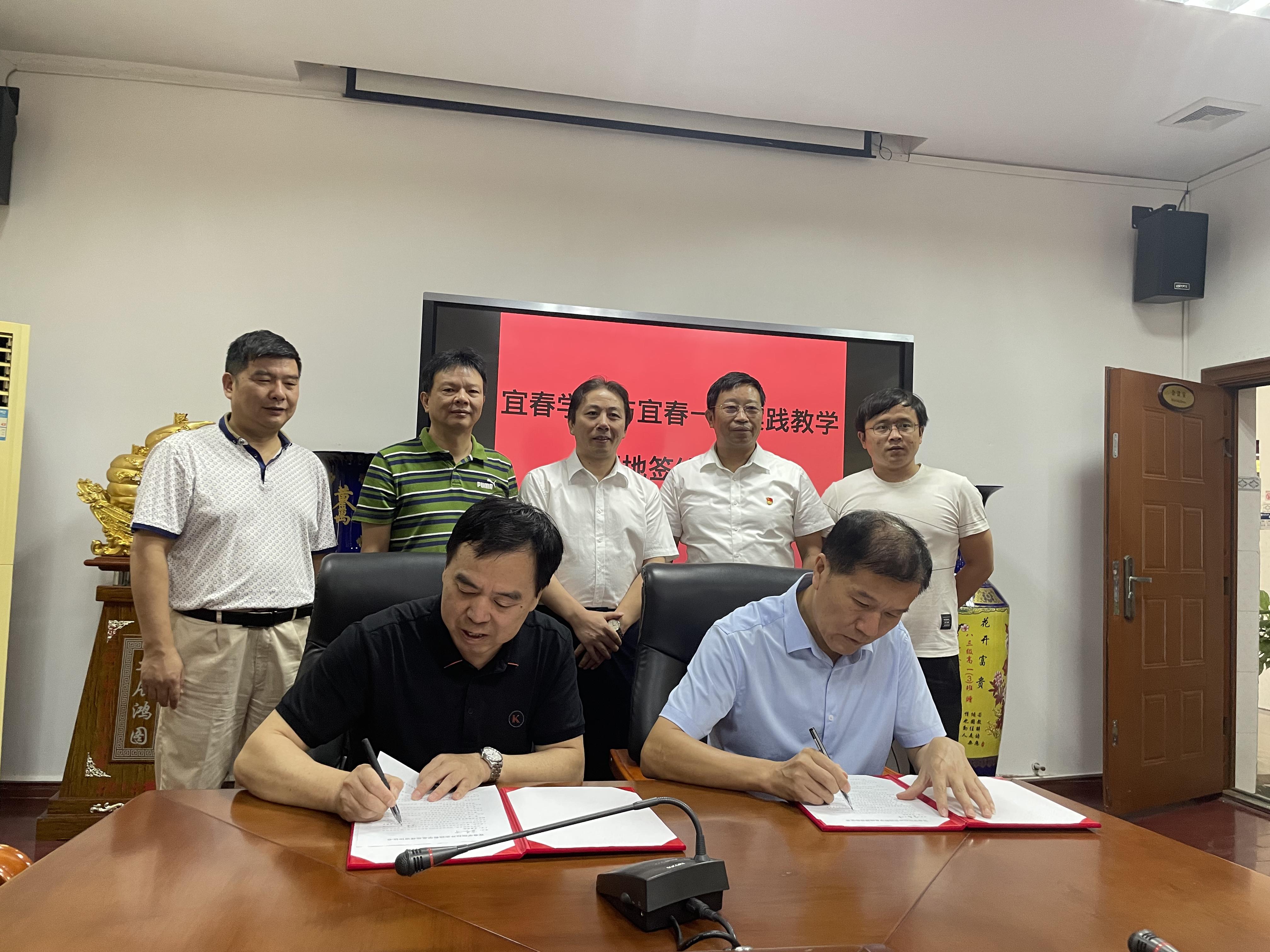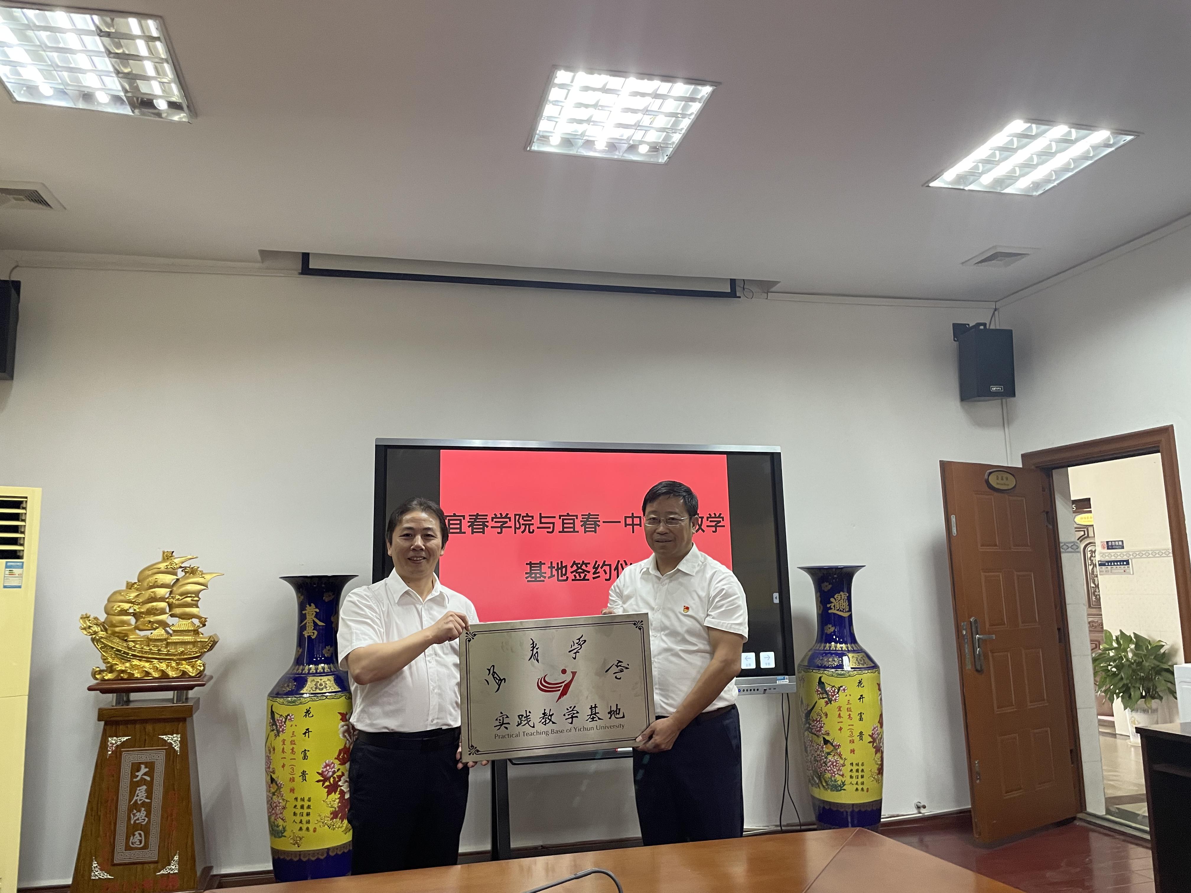 最后,黄志刚代表学校与宜春一中签订了实践教学基地协议,李建军为该校授予基地牌匾。