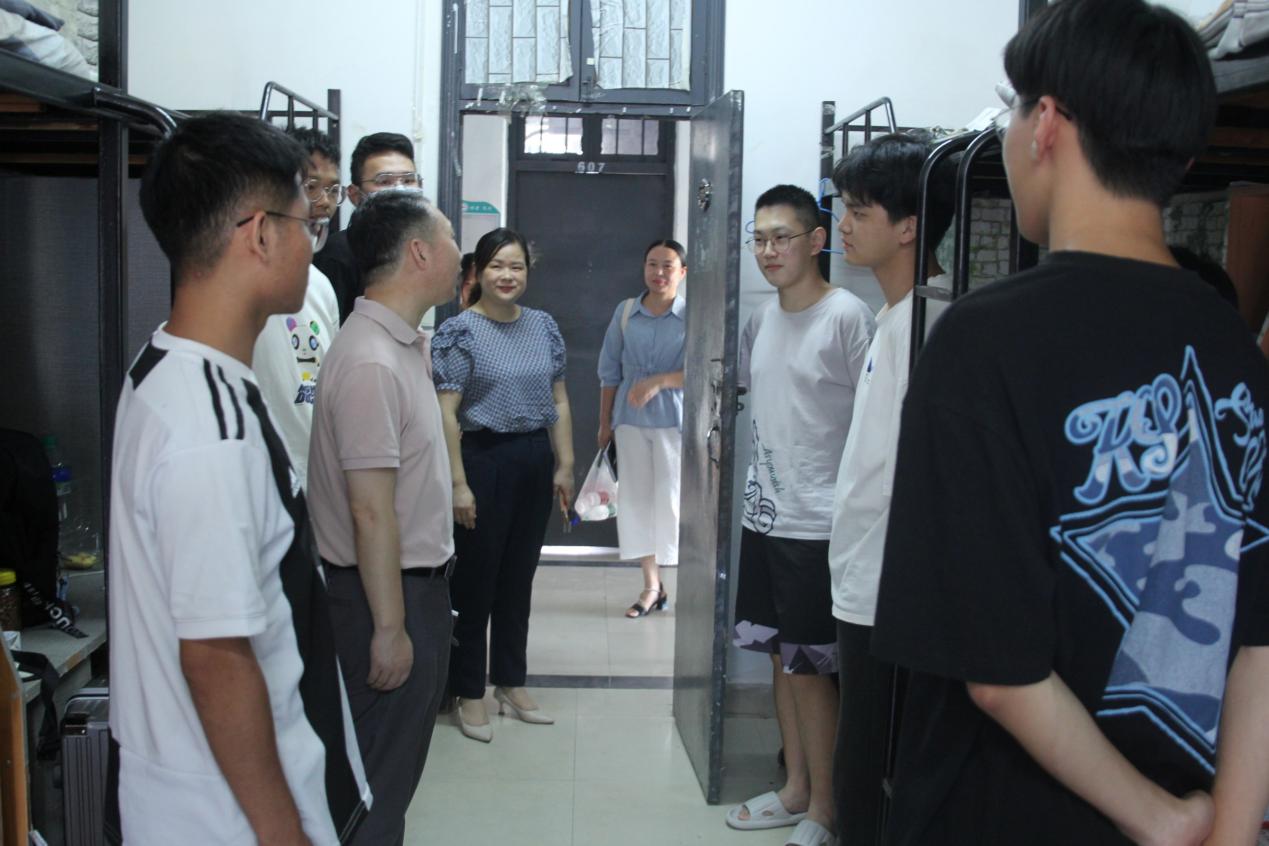 本站讯(学生记者 余梓威 叶豪)9月6日下午,校党委委员、副校长严青松在理工学院党委书记张海帆、院长谢芳、院党委副书记龙玲及新生辅导员班主任等的陪同下,到理工学院学生宿舍走访看望入学新生,深入了解学生入校后的学习与生活情况,并为学生送去关心和问候。