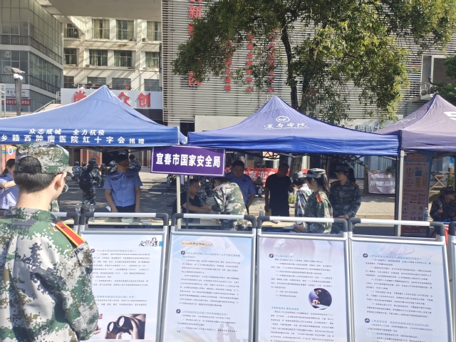 本站讯 (保卫处 供稿)为进一步宣传国家安全知识,不断提高师生国家安全意识,积极营造维护国家安全的浓厚法治氛围,增强防范和抵御安全风险能力,9月15日上午,beat365官方网站以“国家安全知识进高校秋季开学宣传月”活动为契机,联合宜春市公安局、宜春市国家安全局,在大学生活动中心广场开展了国家安全知识宣传进校园活动。