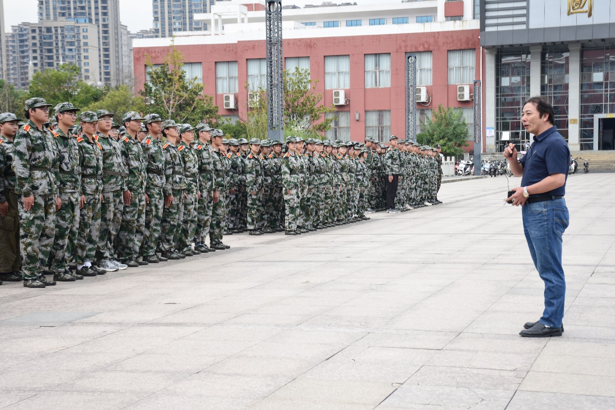 李建军向该院带训教官表示由衷的感谢,并对该院全体军训学生昂扬向上的精神面貌给予高度赞扬。随后,他对全体军训新生提出三点要求:一是遵守纪律,服从教官的指挥和军训安排,严格训练,培养吃苦耐劳、奋勇争先的精神,将军训中学习到的优良品质融入到今后的学习和生活中;二是要认真操练,严于律己,在军训中不但要提高身体素质,更要磨砺意志,增强国防观念;三是团结友爱,要与其他军训新生互帮互助,在高标准、严要求的军训强度下同时注意自己身体情况,量力而为。李建军希望军训新生好好珍惜军训机会,发扬优良作风,以饱满的精神面貌及更加顽强的斗志投入训练中,保质保量完成军训任务,上好“开学第一课”。