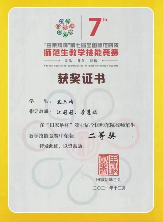 学生在“田家炳杯”全国师范院校师范生教学技能竞赛中获奖