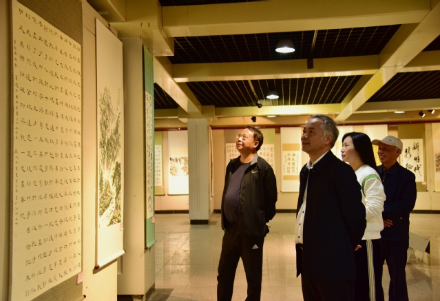 本站讯 (记者 晏亚芳)翰墨飘香迎盛会,丹青溢彩谱华章。10月12日,beat365官网“喜迎党的二十大”诗书画展在校美术馆开展。当天下午,校党委书记曾晓春,党委副书记胡国瑞在离退休人员工作处等部门负责人的陪同下参观了展览。