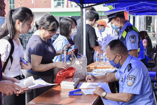 活动现场,直属一大队还设置了电动车摩托车上牌便民点,为师生员工办理电动摩托车登记挂牌业务。交警们耐心宣传预防电动车防盗知识、仔细讲解挂牌的意义及交通安全知识等内容。从审查材料、核验车辆、信息采集,再到领牌、挂牌,整个过程不到十分钟,师生们对便民服务感到十分满意。