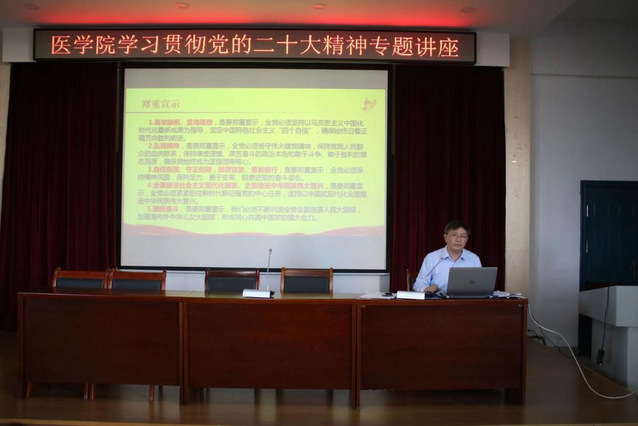 会议强调,全面学习宣传贯彻党的二十大精神是当前和今后一个时期的首要政治任务,全院上下要紧密联系实际,把党的二十大精神体现到做好今年各项工作和安排好今后工作之中,以实干争先的奋进者姿态,推进新时代医学教育事业的建设和发展,为建设有特色高水平地方应用型大学做出新的更大的贡献。