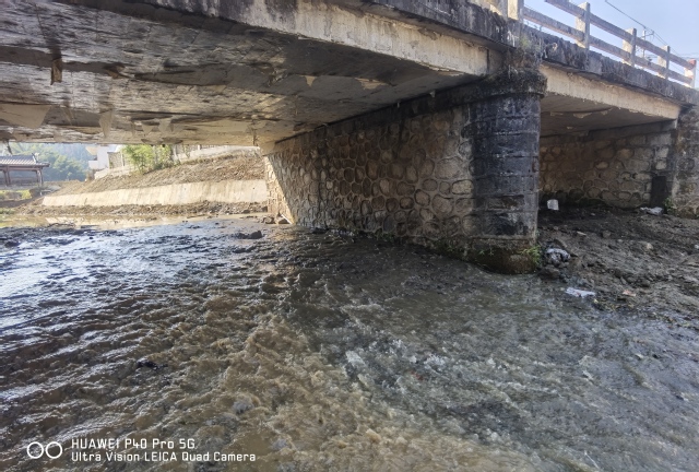 11月9日,正在进行中的石桥村山洪沟治理工程做到了集镇公路桥边,在现场查看施工过程的村干部发现,公路桥桥墩两边被流水冲出了大深坑,桥墩的基础工程外露并且出现了裂缝,整座桥梁存在极大的安全隐患。“我们必须马上用混凝土填满深坑,埋住桥墩的基础工程,以确保大桥的安全。”村党总支书记、村委会主任夏荣光当机立断,召集了村“两委”干部和驻村帮扶干部,带着工具来到桥下,先挖除大坑中的淤泥,再用桶子舀掉坑中的积水,最后用混凝土填平大坑。从当天下午开始干,到当天晚上打着手电干,直到第二天中午,劳动方才结束,彻底填平了桥墩两边的几处大深坑,桥墩得到了稳固。