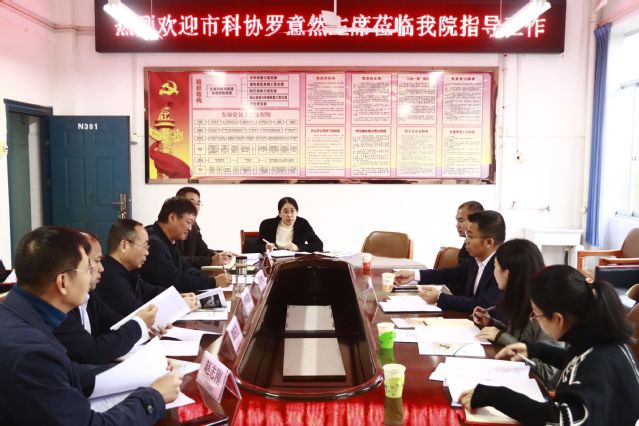 首先,丁永电介绍来宾及参会人员,并对罗意然主席莅临指导表示热烈欢迎。会上,罗意然就“工博士”服务团实施方案的工作进行简单介绍,希望与学院达成合作。李熠就合作方案进行补充说明。随后,赵志刚博士对学院富硒科研任务进行汇报,丁永电对该院在富硒以及高镉土壤降镉方面的科研成绩进行补充说明,学院也希望能与市科协取得更多合作机会,从而为学院教师争取更多的合作平台,也为服务地方经济贡献力量。最后,李鹏成博士对学院科普基地概况进行汇报。
