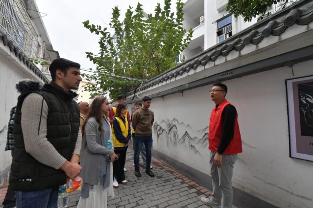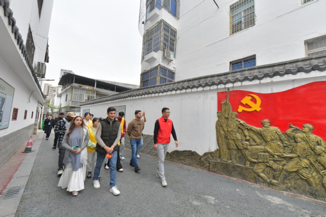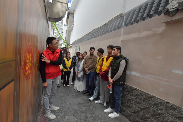 本站讯(记者 袁璐 何杰 特约通讯员 甘点江 学生记者 王梓豪 )11月23日下午,来自巴基斯坦等国家的beat365官方网站留学生和青年学子们驻足袁州区化成街道化成社区的历史文化小巷里,被墙面上图文并茂的袁州红色历史故事深深吸引。