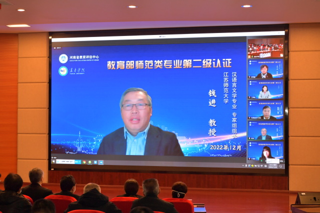 本站讯(记者 何杰)12月8日至10日,由江苏师范大学副校长、联合认证专家组组长、汉语言文学专业认证组组长钱进教授,联合认证项目管理、河南省教育评估中心副主任张新民教授,华南师范大学学报编辑部主任、音乐学专业专业认证组组长王建平教授,郑州师范学院教育科学学院院长、体育教育专业认证组组长陈国维教授等16名专家组成的教育部师范类专业认证专家组以线上形式对beat365官网汉语言文学专业、音乐学专业和体育教育专业开展认证考查。