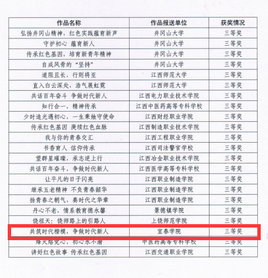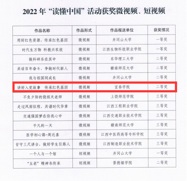 作品荣获教育部关工委、省教育厅关工委2022年“读懂中国”活动多个奖项,对全校师生树立爱党、爱国、敬业、奉献的高尚情操起到了很好的启迪和示范作用,受到了全校师生的关注和一致好评。