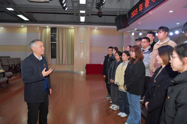 曾晓春从“疫情防控的成就和相关政策的调整”、“经济社会发展的成果与稳中向好的态势”、“‘稳就业’‘保就业’的相关政策与举措”“回归常态化校园的学习与生活”等四个方面,结合世情、国情、省情、市情、校情进行了阐释,他寄语广大学子要厚植爱国大情怀、练就学识真本领、展现创新新风貌、躬行实践基本功,把个人梦想融入国家发展、民族振兴的大潮,与祖国共奋进,与时代齐发展。
