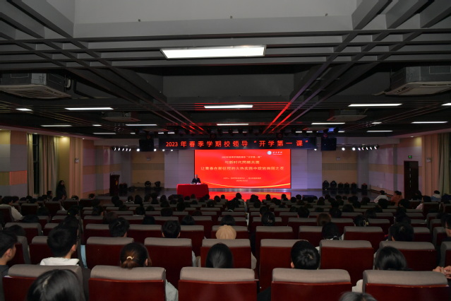本站讯(记者 何杰 特约通讯员 甘点江)春风浩荡满目新,扬帆奋进正当时。2月24日晚,一场主题为“与新时代同频共振 让青春在新征程的火热实践中绽放绚丽之花”的开学第一课在学校青年发展中心举行,校党委书记、校长曾晓春与现场的三百余名大学生代表一起,回顾党和国家发展的光辉历程,展望中国式现代化的光明前景。