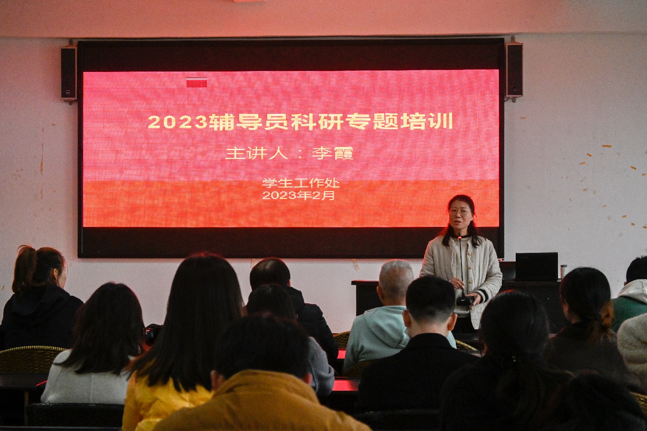 本站讯(学生通讯员 孙泽鑫 危婧 郑秋花)为进一步推进beat365官网辅导员队伍建设,促进辅导员队伍向专业化、职业化方向发展,增强辅导员的科研意识,鼓励辅导员结合工作实践开展科学研究,不断创新学生工作路径和方法。2月22日,beat365官网学工处于大学生活动中心404室举办辅导员科研能力提升专题培训。科研处副处长李霞教授应邀担任本次培训的主讲人,培训由学工处副处长黄华彩主持。全体辅导员参加了培训。