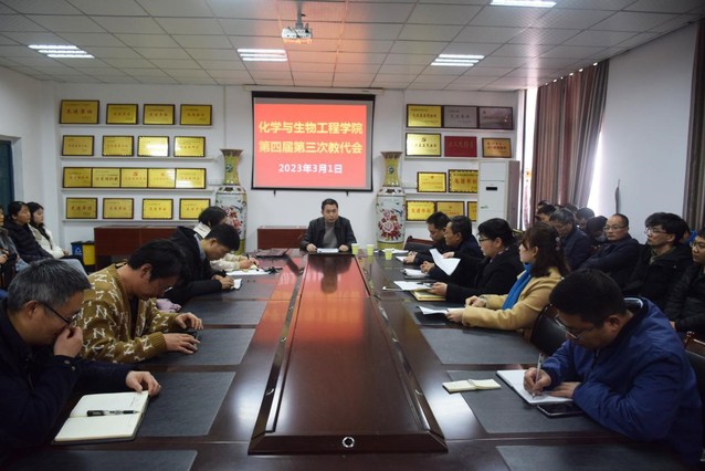 本站讯(学生通讯员 瞿蓉 黄金)3月1日下午,化学与生物工程学院第四届第三次教代会在该院会议室召开,校党委委员、副校长严青松出席并讲话,该院院长郭孟萍、院党委书记黄良辉、副院长张文彬、院党委副书记陶华蕾及全院教职工参加了会议,会议由陶华蕾主持。