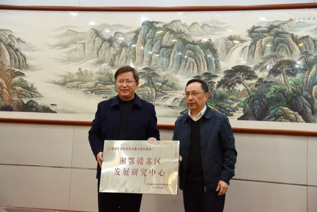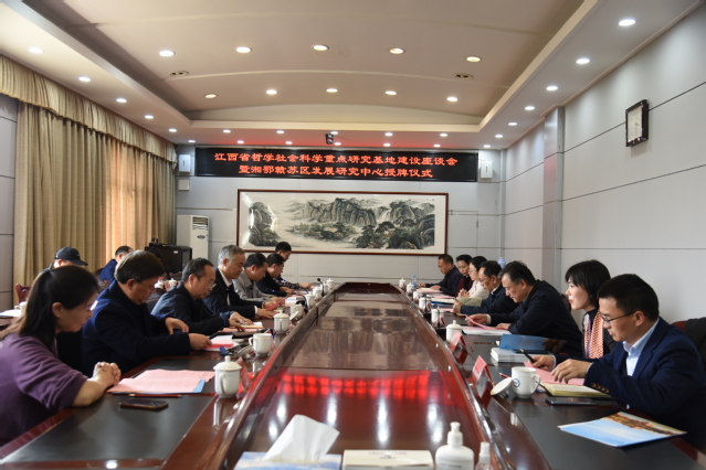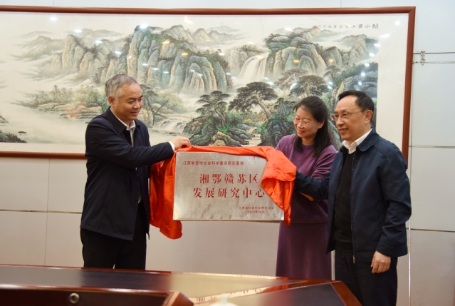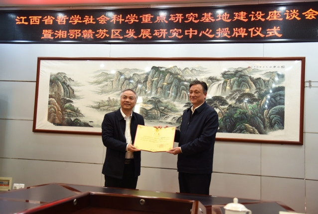 本站讯(特约通讯员 林连男 )3月9日下午,江西省哲学社会科学重点研究基地建设座谈会暨“湘鄂赣苏区发展研究中心”揭(授)牌仪式如期举行。省社联党组成员、副主席刘清荣一行五人出席座谈会。校党委书记、校长曾晓春致欢迎辞。中国井冈山干部学院分管日常工作副院长梅黎明教授莅会指导。党委委员、副校长严青松主持座谈会。