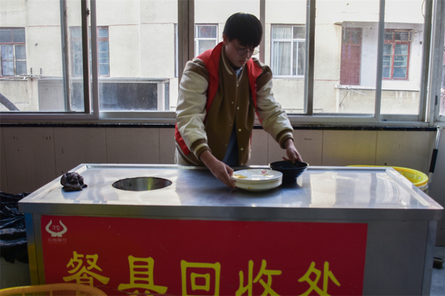 志愿者们秉承勤劳肯干、认真负责的工作态度,准时到达分配好的岗位,文明引导广大同学自觉排队,做到“不插队、不拥挤、不喧哗”。同时,为深入了解同学们的用餐情况,各餐具归放处均安排志愿者站岗督查,对部分有食物浪费现象的同学加强“滴水凑成河,粒米凑成箩”节约意识的宣传,呼吁同学们要践行“光盘行动”,树立良好的节约意识,认识到节约粮食的重要性。