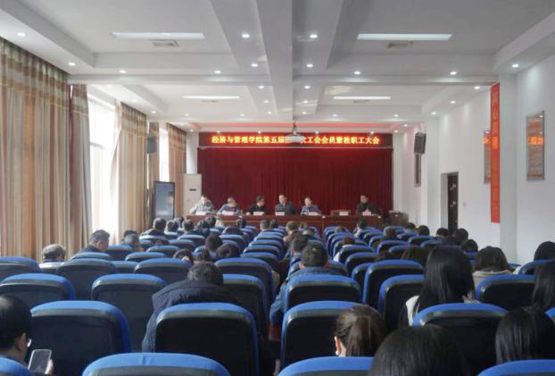 会议伊始,全体与会人员起立,奏唱《中华人民共和国国歌》。梅光泉向大会致辞,首先肯定了经管学院在过去一年取得的不菲成绩,其次对加强思想政治工作、提高教学教研水平、促进改革创新等方面提出殷切期望。