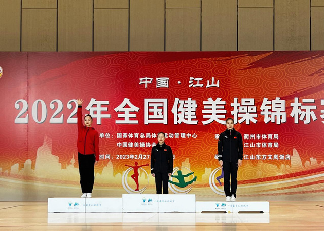 本站讯(体育学院 供稿)由国家体育总局体操运动管理中心、中国健美操协会主办,衢州市体育局、江山市体育局承办的“中国·江山”2022年全国健美操锦标赛于2023年2月27日-3月5日在浙江省江山市举行。beat365官方网站健美操队在本次比赛中再创佳绩,一名队员获全国亚军,并荣获“国家级运动健将”等级;另有四名队员获全国第七、第八名,并荣获“国家一级运动员”等级。